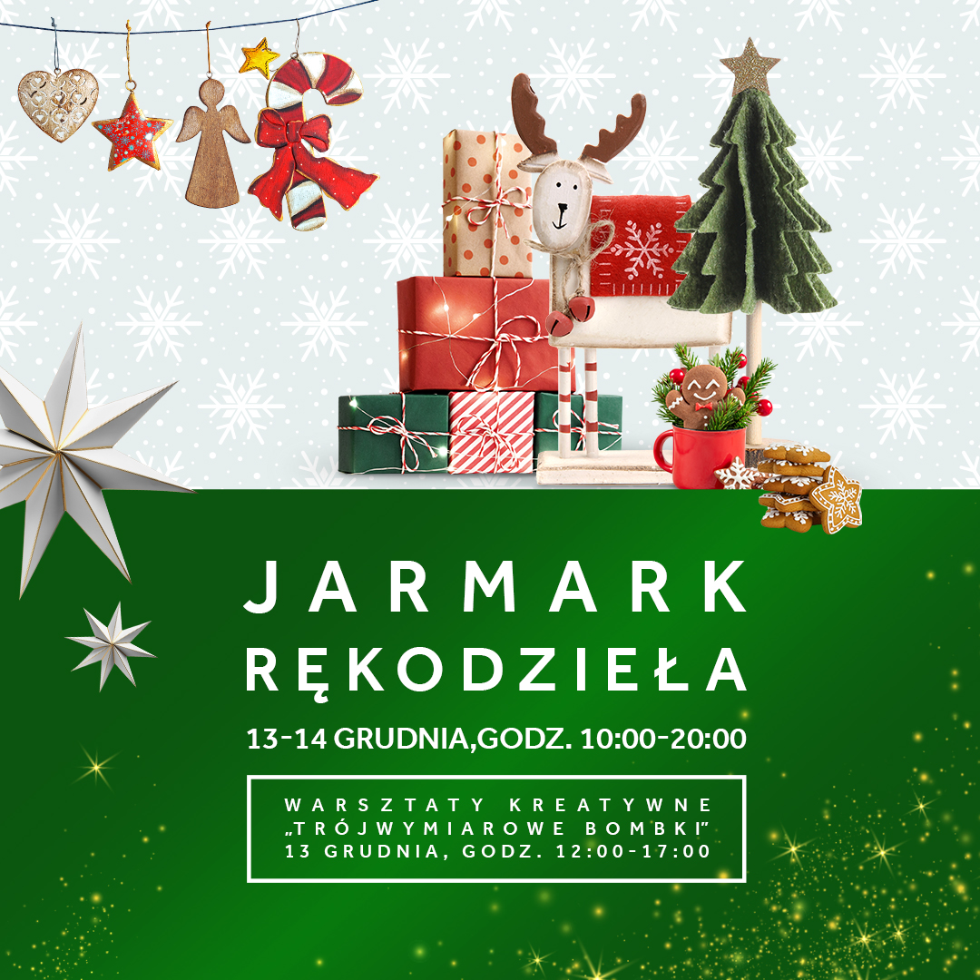 Serdecznie zapraszamy na Jarmark Rękodzieła, który odbędzie się w dniach 13 – 14 grudnia w godzinach 10:00 – 20:00. To wyjątkowe wydarzenie zgromadzi twórców z różnych dziedzin rękodzieła, prezentujących unikatowe, wykonane z pasją i dbałością o każdy detal produkty. Jarmark to idealna okazja, aby znaleźć oryginalne prezenty świąteczne oraz poznać lokalnych artystów.